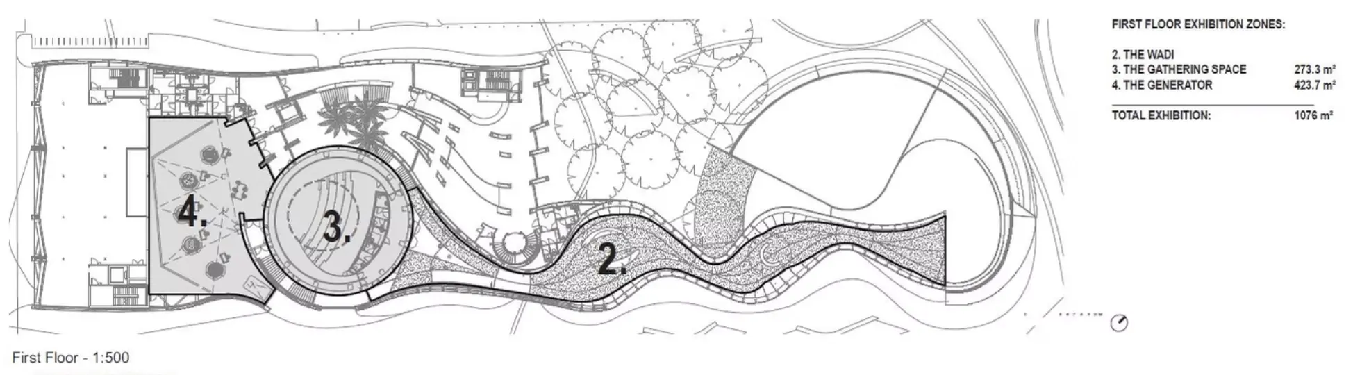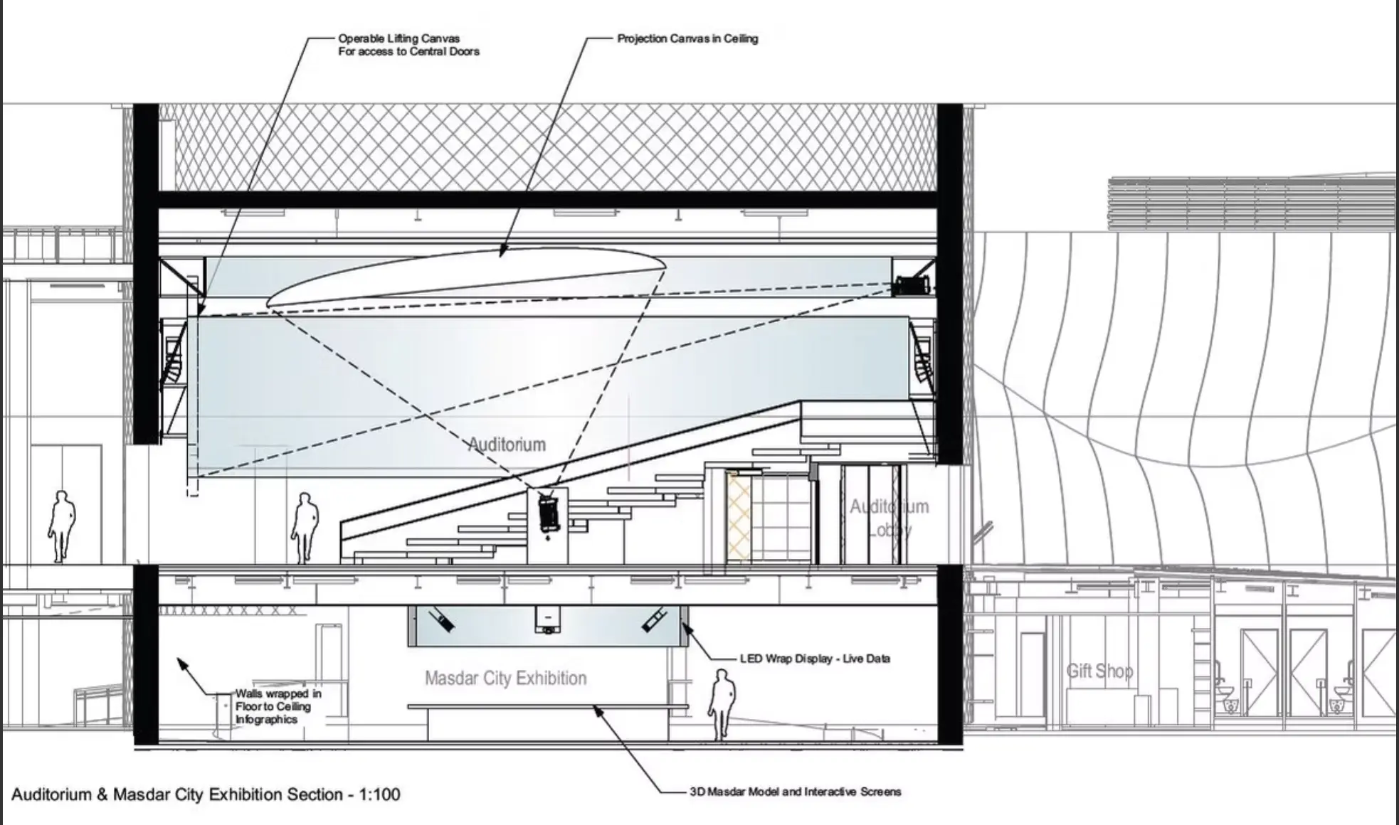 Organized into five key experiential zones "The Welcome, The Wadi, The Gathering Space, The Generator, and The Community", the centre blends storytelling, multimedia, and hands-on exhibits to communicate Masdar’s role as a global leader in sustainable development. With features such as immersive theatres, energy solution interactives, and a dynamic 3D model of Masdar City, the design balances education, engagement, and institutional showcase.
