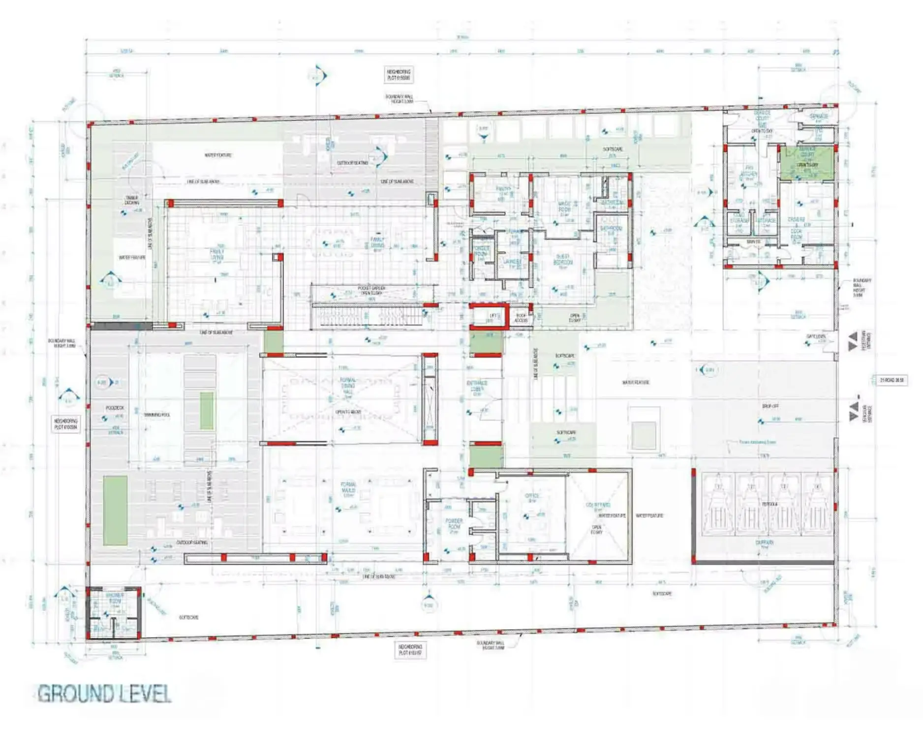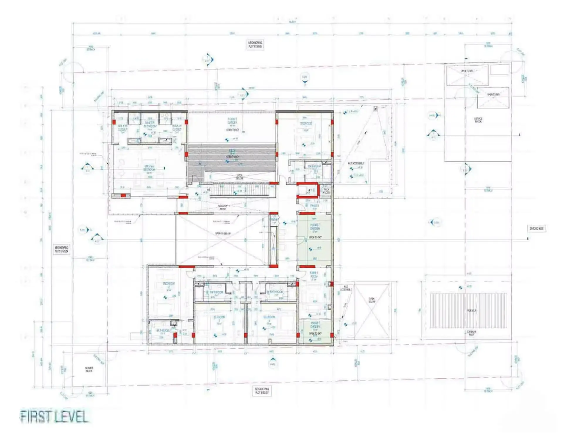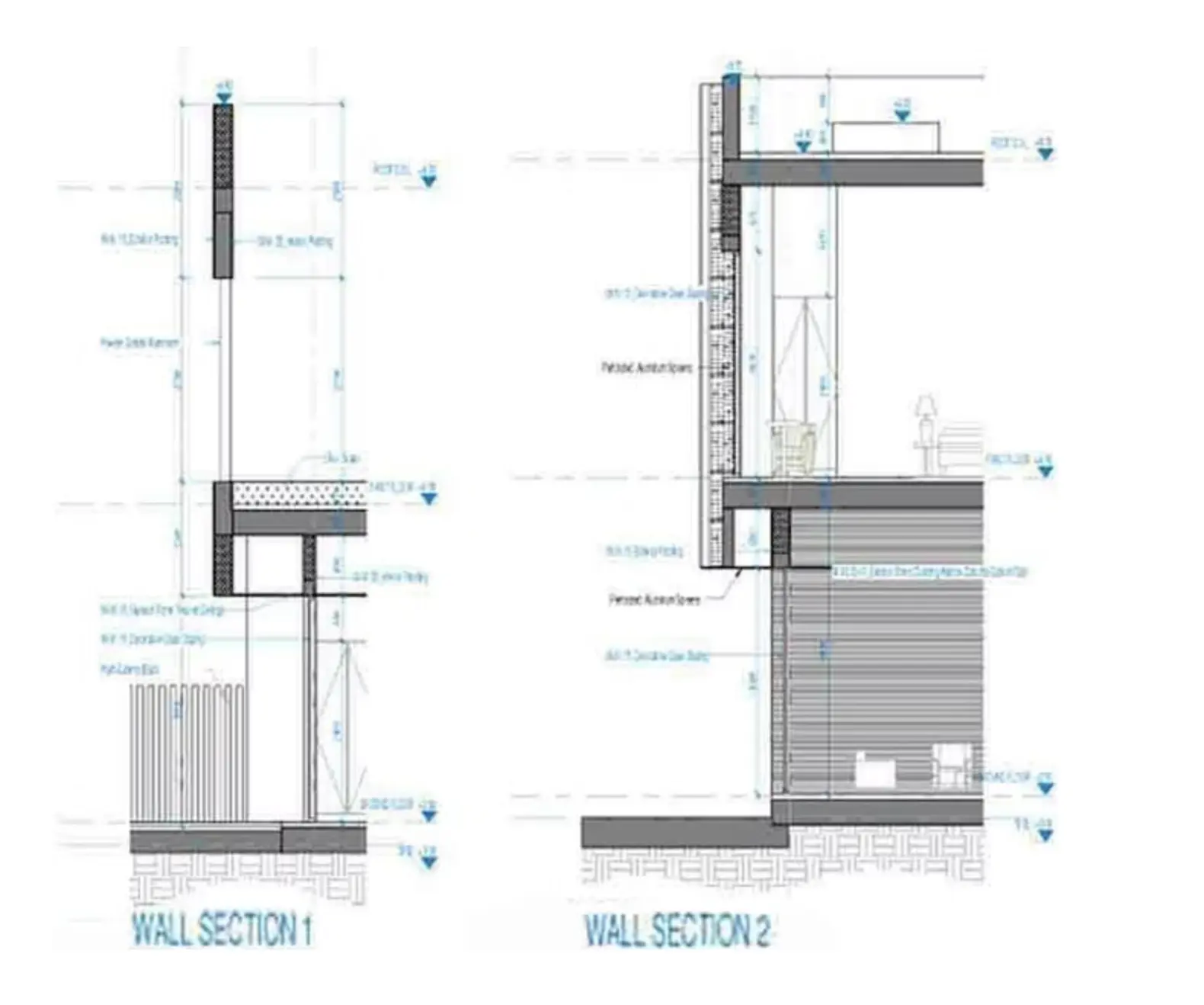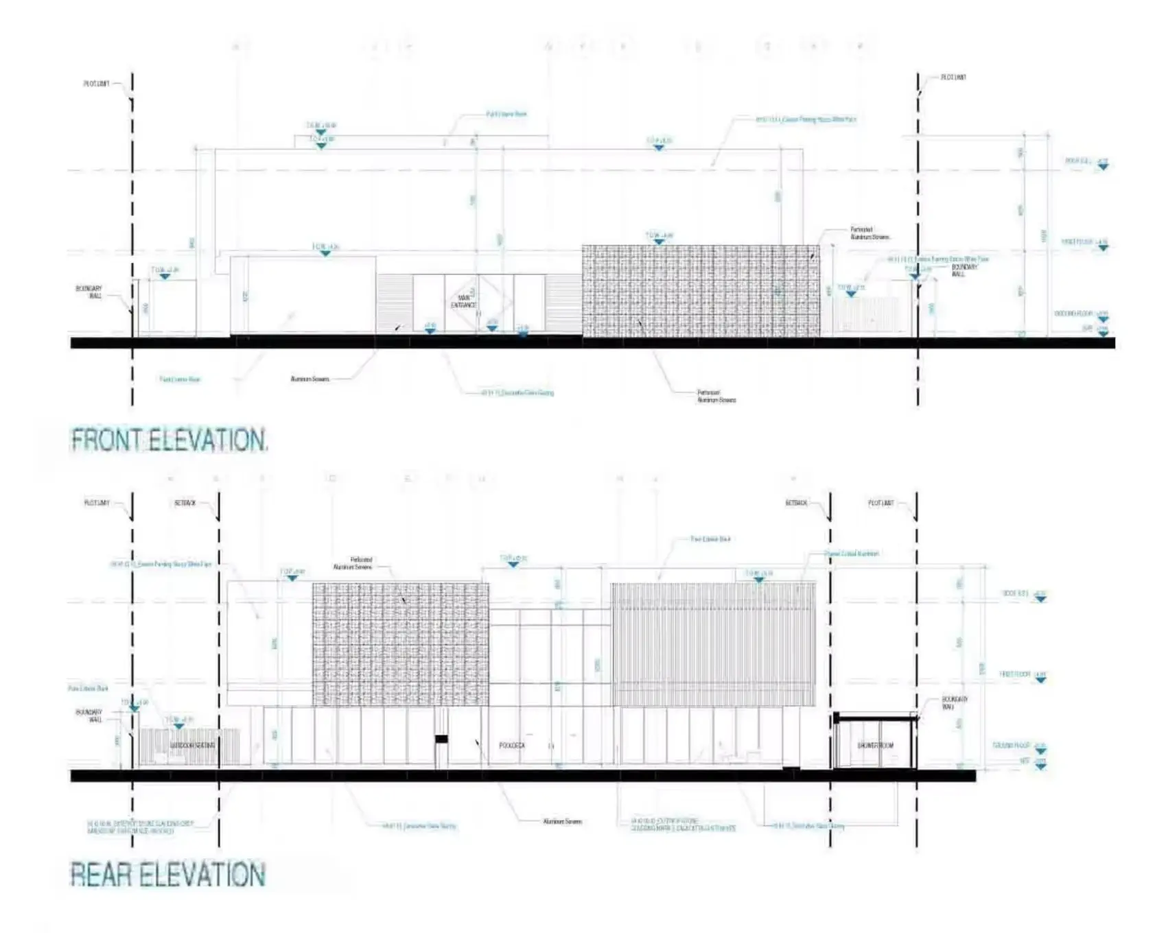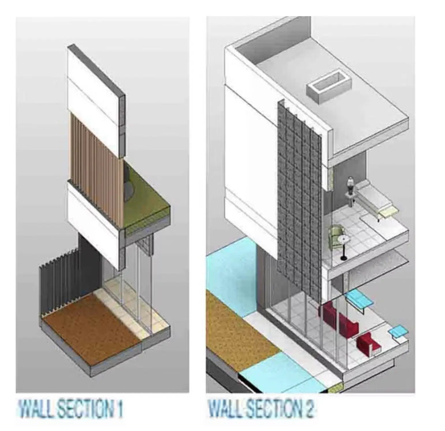 The architectural layout showcases spatial clarity, with a fluid ground floor plan and thoughtfully designed upper levels that prioritise both openness and comfort. The façade treatment, highlighted by a perforated screen wall, combines aesthetic character with shading performance, ensuring both privacy and thermal efficiency. Detailed sectional studies further illustrate the precision in construction and material articulation, underscoring the project’s emphasis on craftsmanship and contemporary design identity.